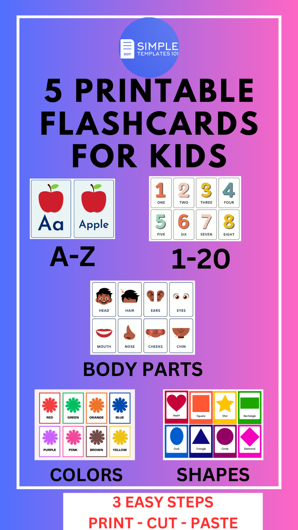 5 Printable Learning Flashcards For Kids 2 yrs and Up
